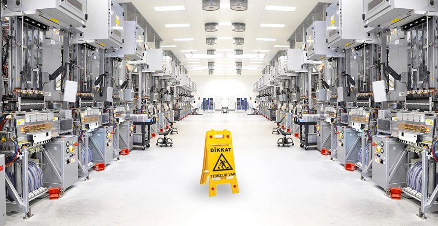 Üretim alanlarında iş sağlığı ve güvenliği standartlarına uygun temizlik çözümleri sunarak, çalışma ortamlarını verimli ve güvenli hale getiriyoruz.